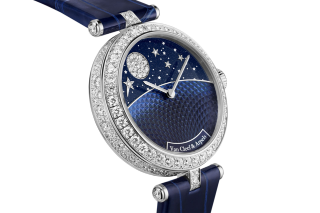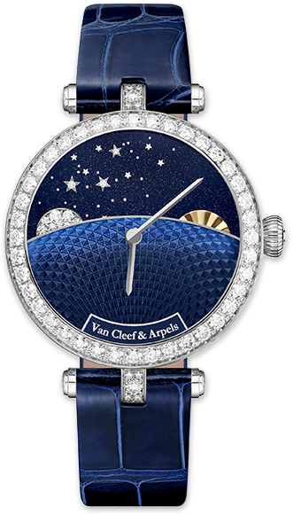 ความเวิ้งว้างตระการตาของผืนทิฆัมพรประดับดาราในยามรัตติกาล เป็นแรงบันดาลใจให้ Van Cleef & Arpels สรรค์สร้างนาฬิกาข้อมือสุดเลอค่าด้วยความวิจิตรประณีตอันสะท้อนถึงแนวทางเอกลักษณ์ในงานออกแบบ “บทกวีบอกเวลา” หรือ Poetry of Time ของเมซงโดยอาศัยกลไกอัจฉริยะในการบอกเวลาได้อย่างเที่ยงตรง และแม่นยำร่วมกับจินตศิลป์จำลองวิถีโคจรสลับผันเปลี่ยนระหว่างจันทราแห่งราตรีกับดวงรวีแห่งทิวาของแต่ละวันมาสู่ลีลานาฏกรรมแห่งเวหนบนหน้าปัดนาฬิกาข้อมือรุ่น Lady Jour Nuit