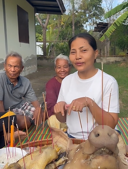 โดย สุนารี ราชสีมา ได้เผยว่า …. ทำตามที่หลานชายฝัน เล่าสู่กันฟังเฉยๆเด้อ …. ได้มีโอกาสไหว้เจ้าที่ของพี่สาวคนโตเสียชีวิตไปเมื่อปีก่อน พอดีหลานชายฝันว่าเหมือนมีคนผู้ชายตัวดำๆกับเด็กน้อยคนหนึ่งจูงมือกันมาอยู่ตรงต้นทุเรียนบอกว่ามาขอกินหัวหมูสักหัวหนึ่งหิวแล้วก็ไก่หนึ่งตัว เขาไม่เคยได้กินเลยเขาอยากกิน แต่เขาบอกว่าถ้าทำให้เขาเขาจะให้ 3 งวดติดเขาพูดมาเลยในฝันบอกว่าจะให้ถูกรางวัลที่ 1 จะถูกไม่ถูกเราไม่รู้นะแต่ว่าเขามาขอขนาดนี้เราก็จัดให้นะคะให้หรือไม่ให้เราก็ไหว้ หลานก็ฝันเป็นเรื่องเป็นราวเป็นคนฝันแม่นนะ เขาเป็นคนมีเซ้นต์บางอย่างนะคะ