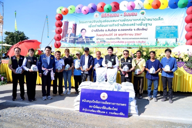 วันที่ 28 พฤศจิกายน 2567 นายอัครา พรหมเผ่า รัฐมนตรีช่วยว่าการกระทรวงเกษตรและสหกรณ์ และคณะ ลงพื้นที่ติดตามโครงการปรับปรุงซ่อมแซมแหล่งน้ำขนาดเล็กฯ เพื่อถ่ายโอนภารกิจด้านโครงสร้างพื้นฐานบ้านโป่งจ้อ หมู่ 7 ตำบลสันติสุข อำเภอดอยหล่อ จังหวัดเชียงใหม่ ซึ่งเป็นโครงการสำคัญของกรมพัฒนาที่ดิน ในการพัฒนาโครงสร้างพื้นฐานด้านการอนุรักษ์ดินและน้ำในพื้นที่หมู่บ้านโป่งจ้อ จากปัญหาการขาดแคลนน้ำในการทำการเกษตรและการอุปโภคบริโภค โดยเฉพาะในช่วงฤดูแล้ง ส่งผลให้คุณภาพผลผลิตทางการเกษตร เช่น ลำไย หอมหัวใหญ่ ไม่ได้คุณภาพตามที่ตลาดต้องการ อีกทั้งพื้นที่ยังขาดระบบกระจายน้ำเข้าพื้นที่การเกษตร เนื่องจากใช้เครื่องสูบน้ำ สูบน้ำจากแหล่งน้ำเพื่อมาทำการเกษตร ทำให้มีต้นทุนการผลิตสูงในการใช้น้ำ