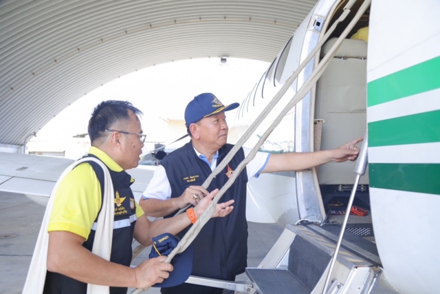 นายราเชน ศิลปะรายะ รองอธิบดีกรมฝนหลวงและการบินเกษตร ด้านปฏิบัติการ ลงพื้นที่ติดตามแผนงานการบรรเทาปัญหาฝุ่นละอองในอากาศ ณ ศูนย์ฝนหลวงหัวหิน ภายในท่าอากาศยานหัวหิน ตำบลหัวหิน อำเภอหัวหิน จังหวัดประจวบคีรีขันธ์ ได้มีการวางแผนจัดการแก้ไขปัญหาฝุ่นละลองในอากาศ โดยเฉพาะ PM2.5 ผ่านการดัดแปรสภาพอากาศ เพื่อช่วยลดปริมาณฝุ่นละอองในอากาศ