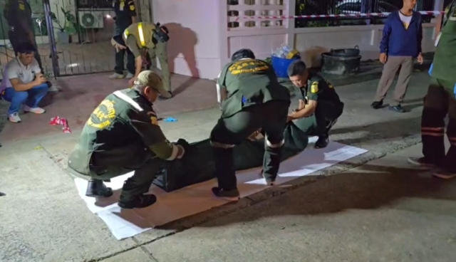 เมื่อเวลา 01.30 น. วันที่ 27 พ.ย. 67 พ.ต.อ.สมพล วงศ์ศรีสุนทร รอง ผบก.ภ.จว.นนทบุรี พ.ต.ท.ติรัส ตฤณเตชะ รอง ผกก.สส.สภ.ปากเกร็ด พ.ต.ต.ดิลก ลาดศิลา สว.สส.สภ.ปากเกร็ด พร้อมด้วยกำลังเจ้าหน้าที่ตำรวจชุดสืบสวน สภ.ปากเกร็ด ได้รับแจ้งเหตุมีผู้ถูกแทงเสียชีวิต 1 ราย เหตุเกิดบริเวณหมู่บ้านประชาชื่นซอย 15 ต.บางตลาด อ.ปากเกร็ด จ.นนทบุรี พร้อมด้วยแพทย์จากสถาบันนิติวิทยาศาสตร์และเจ้าหน้าที่มูลนิธิร่วมกตัญญูรีบตรวจสอบ