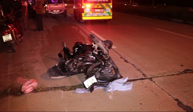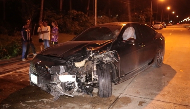 ในจุดเกิดเหตุห่างจากศพแรกเพียง 20 เมตร เจ้าหน้าที่พบรถจักรยานยนต์สีดำ หมายเลขทะเบียน 1 กณ 9257 ชุมพร ถูกชนท้ายอย่างแรงจนรถอยู่ในสภาพหักงอ ส่วนรถคู่กรณี คือรถยนต์เก๋งสีดำ ยี่ห้อ BMW หมายเลขทะเบียน กจ 44 นครศรีธรรมราช จอดสนิทอยู่บนถนนคู่ขนาน โดยหันหน้าสวนทางกับรถขาออก ห่างจากรถจักรยานยนต์เกือบ 100 เมตร อยู่ในสภาพตั้งแต่กันชนไปถึงล้อด้านหน้าขวา พังยับเยิน นอกจากนี้ล้อหลังด้านขวา ยังพับหักจากอุปกรณ์ส่วนยึดล้ออีกด้วย ส่วนคนขับรถคันดังกล่าวไม่พบในที่เกิดเหตุแล้ว