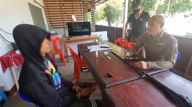 ที่เกิดเหตุพบนายมงคล ดอนขัน ผู้ใหญ่บ้านหมู่14 บ.วังทอง ต.หนองไฮ และนายสันติ ชัยคงหาร อายุ 44 ปี ซึ่งเป็นอาผู้ก่อเหตุได้ควบคุมตัวนายเบิร์ด อายุ 30 ปี ผู้ก่อเหตุ พร้อมของกลางอาวุธปืนแก๊ปยาวชำรุด ตรวจสอบในลำกล้องไม่พบการประจุดินปืนและกระสุนลูกปราย ยอมรับว่าเป็นอาวุธปืนของตัวเองที่เอาไว้ใช้ยิงนกยิงหนู และเก็บไว้ที่เล้าไก่บริเวณกระท่อมนาในสวนมันสำปะหลัง และสวนยางพาราที่อยู่ห่างจากหมู่บ้านประมาณ 500 เมตร และไม่ได้ยิงใส่ใคร ตำรวจจึงควบคุมตัวมาสอบสวนที่โรงพัก ตรวจปัสสาวะมีผลเป็นบวก