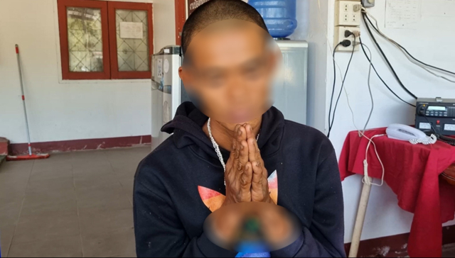 นายมงคล เล่าว่า เมื่อคืนนี้ได้รับแจ้งว่านายเบิร์ดไปก่อเหตุเผาไร่อ้อยชาวบ้านหนองไฮ ชาวบ้านช่วยกันดับทัน และไม่ติดใจ เพราะรู้ว่านายเบิร์ดสติไม่ดี หรือเพี้ยนจากการเสพยาบ้ามานานหลายปี กระทั่งเช้าวันนี้มีชาวบ้านเห็นนายเบิร์ดสะพายปืนแก๊ปเดินอยู่ในชุมชนหลายรอบ ทำให้พากันหวาดกลัวแล้วแจ้งมาที่ตน และญาติพี่น้องของนายเบิร์ดมาควบคุมตัวไว้ รอตำรวจนำไปดำเนินคดีตามกฎหมาย ตนเคยจับคนก่อเหตุส่งตำรวจมาหลายครั้งแล้ว หลังเขาพกมีดพร้าเดินไปตามถนนในหมู่บ้าน ส่วนบ้านของเขาก็อยู่หลังบ้านตน เมื่อตนจับเขาส่งตำรวจผ่านไป 1 คืนตำรวจก็ปล่อยตัวออกมา และไม่มีอะไรดีขึ้น เขาก็ยังทำตัวเหมือนเดิม แต่ก็ไม่เคยทำร้ายใคร