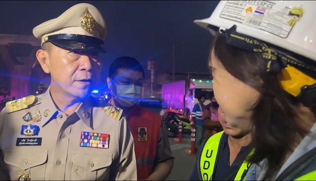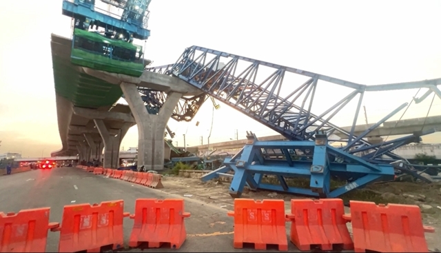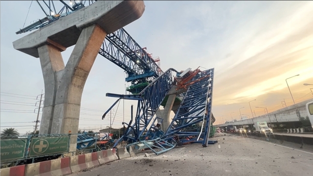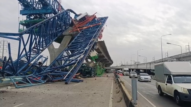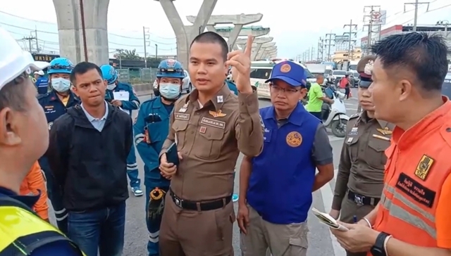 เมื่อเวลาประมาณ 04.00 น. วันที่ 29 พ.ย. 67 ร.ต.ท.เดชนคร จันทร์ภูมิ รองสารวัตรสอบสวน สภ.เมืองสมุทรสาคร เข้าตรวจสอบเหตุ “ทรัส” หรือตัวยกแผ่นปูนที่ใช้สร้างทางยกระดับถนนพระราม2 ตอนที่1 ช่วงที่3 พื้นที่ กม.21+600–กม.22+100 ถนนพระราม2 ขาออกกรุงเทพฯ หมู่ที่4 ต.นาดี อ.เมือง จ.สมุทรสาคร ซึ่งอยู่ในความรับผิดชอบของบริษัทอุดมศักดิ์เชียงใหม่ถล่มลงมา