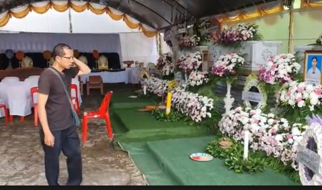 ความคืบหน้ากรณีดังกล่าวเมื่อเวลา 12.00 น. วันที่ 29 พ.ย.67 ที่บ้านงานศพของผู้เสียชีวิต 3 แม่ลูก ซึ่งตั้งอยู่เลขที่ 130/1 หมู่ 3 ตำบลทุ่งคา อ.เมือง จ.ชุมพร โดยตั้งหีบศพเรียงกันทั้ง 3 ศพ มีหีบศพแม่ตั้งอยู่ตรงกลาง ส่วนด้านซ้ายเป็นลูกชายและด้านขวาเป็นลูกสาว มีหรีดจากหน่วยงานราชการ ผู้นำท้องที่ และญาติสนิททั่วไป และมีหรีดของ น.ส.จิรันธนิน แตงขาว คนขับรถเก๋ง BMW มาตั้งอยู่หน้าหีบศพด้วย