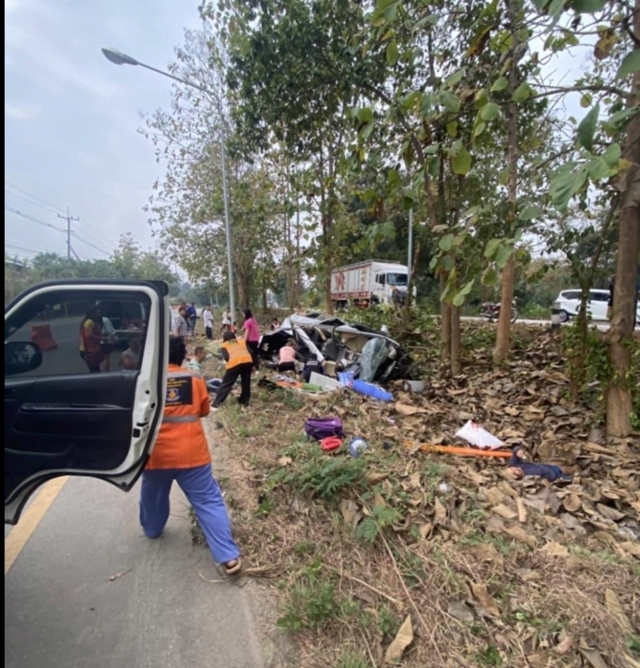 วันที่ 6 ธ.ค. 67 พ.ต.ท.มนตรี แก้วสุริยะ รองผกก.(สอบสวน) สภ.งาว พร้อมกับเจ้าหน้าที่กู้ชีพโรงพยาบาลงาว เจ้าหน้าที่กู้ภัยงาวเข้าตรวจสอบ หลังรับแจ้งมีอุบัติเหตุรถตู้เสียหลักพลิกคว่ำชนต้นไม้