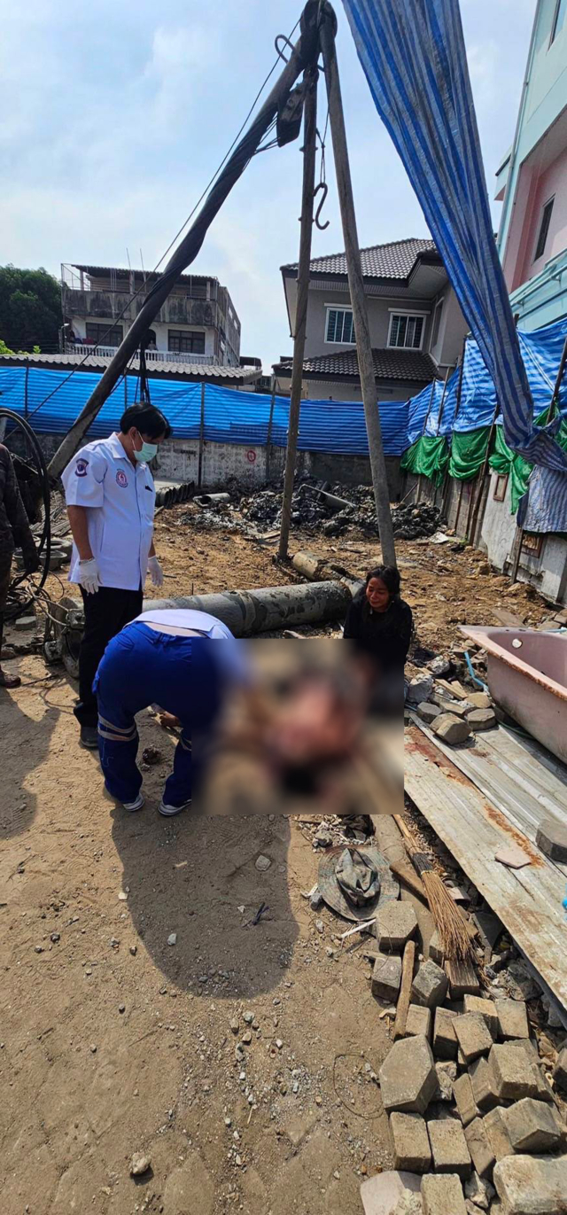 ด้านคนงานที่อยู่ในที่เกิดเหตุ เล่าว่า ขณะที่ทำงานอยู่นั้น แท่งขุดเจาะดินขนาด 3 ขา ได้เสียหลักเอนล้ม เนื่องจากบริเวณในหลุมมีก้อนหินขนาดใหญ่ ซึ่งมีผู้ที่บังคับเครื่องจักรมีศักดิ์เป็นพ่อตาของผู้เสียชีวิต ได้ตะโกนให้สัญญาณบอกว่าแท่งเหล็กกำลังจะหลุดจากตะขอ ทันทีที่ผู้เสียชีวิตได้ยินดังนั้นก็พยายามจะวิ่งหนี แต่เคราะห์ร้ายที่แท่งเหล็กล้มไปทางที่ผู้เสียชีวิตหลบหนีพอดี ซึ่งเจ้าหน้าที่กู้ภัยพยายามจะ CPR ช่วยเหลืออย่างเต็มที่ แต่ไม่เป็นผล