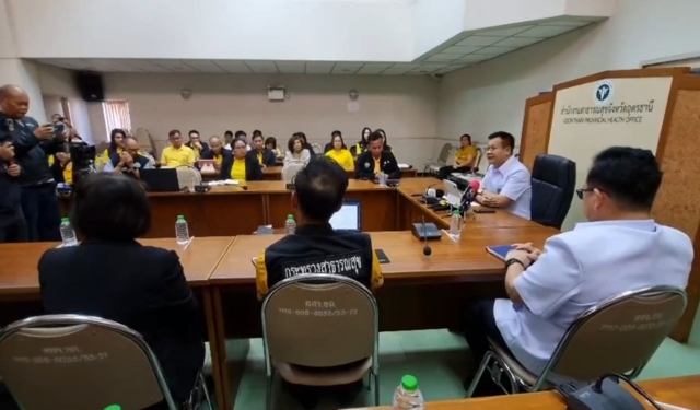ความคืบหน้ากรณีดังกล่าว ที่ห้องประชุมทองกราว สำนักงานสาธารณสุข จ.อุดรธานี ดร.นพ.สมชาย โชติปิยวัชร์เวลา นายแพทย์สาธารณสุขจังหวัดอุดรธานี นายคงจักร์ บุญทัน ผู้อำนวยการศูนย์สนับสนุนบริการสุขภาพที่ 8 ร่วมกันแถลงข่าวชี้แจงถึงกรณีที่เกิดขึ้น