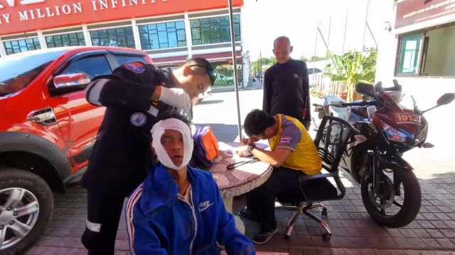 ด้านนายณรงค์พล ยศปัญญา อายุ 31 ปี ผู้ช่วยเหลือเจ้าพนักงานเขตงานนิตโย เล่าว่า ขณะนั่งรอเข้าเวร ผู้บาดเจ็บก็วิ่งหน้าตาตื่นเข้ามาขอความช่วยเหลือบอกว่าถูกคนทำร้ายร่างกาย ตอนนั้นตนก็ตกใจเพราะเห็นว่ามีเลือดไหลอาบหน้ามา ตนก็เลยบอกให้ใจเย็นๆ จะเรียกรถพยาบาลมูลนิธิให้ ระหว่างนั้นเขาก็บอกว่าไปนั่งกินเหล้ากับเพื่อนมาทะเลาะกันพูดจากันไม่เข้าหู จึงถูกทำร้ายร่างกาย แต่เท่าที่สังเกตชายคนดังกล่าวเมาแน่นอน พูดจาไม่รู้เรื่องวกวนไปมา
