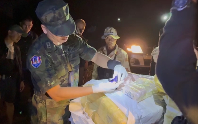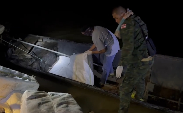 จนกระทั่ง วันที่ 8 ธ.ค.67 เวลา 21.45 น. ชุดชุ่มเฝ้าตรวจจริมแม่น้ำโขง บริเวณบริเวณร้านเนื้อย่างหมูยิ้ม บ้านหว้านใหญ่ ม.4 ต.หว้านใหญ่ อ.หว้านใหญ่ จ.มุกดาหารได้ตรวจพบเรือกีบเพลายาวเครื่องยนต์ติดท้าย วิ่งมาจากฝั่ง สปป.ลาว เข้ามาจอดบริเวณจุดเกิดเหตุ ห่างจากชุดชุ่มเฝ้าตรวจประมาณ 100 เมตร และมีกลุ่มชายฉกรรจ์จำนวนมาก กำลังลำเลียงถุงกระสอบต้องสงสัย จึงได้เข้าแสดงตนเป็นเจ้าหน้าที่ กลุ่มชายฉกรรจ์ดังกล่าวเมื่อทราบว่าเป็นเจ้าหน้าที่จึงอาศัยความมืด และความชำนาญในพื้นที่หลบหนีไปได้ ชุดซุ่มตรวจจึงได้เข้าตรวจบริเวณจุดเกิดเหตุ เบื้องต้นพบกระสอบสีขาวรบนฝั่งริมแม่น้ำโรงจำนวน 14 กระสอบ และกระสอบสีขาว บนเรือฯ จำนวน 6 กระสอบ รวมทั้งหมด จำนวน 20 กระสอบ และได้รายงานให้ผู้บังคับบัญชาทราบ รวมทั้งแจ้งหน่วยงานความมั่นคงเพื่อร่วมกันตรวจสอบวัตถุต้องสงสัยนั้น