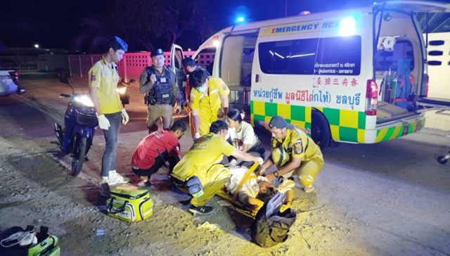 ที่ลานจอดรถด้านหลังร้านพบร่างนาย ศักดา นพสิทธิ์ อายุ 61 ปี อดีตเลขานุการ รมว.กระทรวงทรัพยากรธรรมชาติและสิ่งแวดล้อม และเป็นบิดาของ น.ส.วรรณิดา นพสิทธิ์ สส.ชลบุรี เขต 2 พรรคประชาชนได้รับบาดเจ็บสาหัส โดนยิงด้วยอาวุธปืนเข้าที่หน้าท้อง กระสุนทะลุกลางหลัง 1 นัด กู้ภัยฯปฐมพยาบาลบาดแผลเบื้องต้น รีบนำส่ง รพ.ชลบุรี