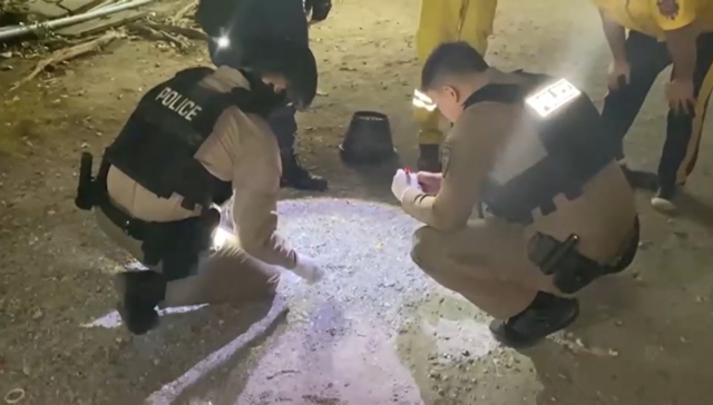 ที่เกิดเหตุพบปลอกกระสุนปืนขนาด 9 มม.ตกอยู่ และมีกระสุนปืนขนาดเดียวกันที่ยังไม่ได้ยิงตกเกลื่อน ลักษณะเหมือนแม็กปืนแตก