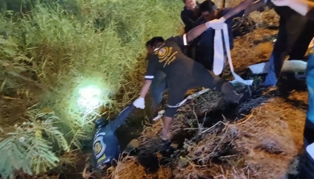 ที่เกิดเหตุพบรถจักรยานยนต์บิ๊กไบค์ สีน้ำตาล ทะเบียน 2ขข3888 กรุงเทพมหานครล้มอยู่ริมถนน สภาพมีรอยชนหน้ารถพังเสียหายยับเยิน ล้อหน้าหลุดหาย ใกล้กันพบร่างผู้เสียชีวิตนอนอยู่ สภาพมีแผลแตกที่หน้าผาก และใต้คางเลือดท่วมหน้าทราบชื่อ นายภาณุวัฒน์ มีชนะ อายุ 28 ปี และในร่องน้ำข้างทางใกล้กันพบร่างผู้เสียชีวิตจมอยู่ในน้ำเจ้าหน้าที่กู้ภัยช่วยกันนำร่างขึ้นมาตรวจสอบทราบชื่อ ส.ต.ต.กิตติภูมิ มรกต อายุ 29 ปี ผบ.กก.ตชด.44ส ภาพปากฉีกหน้าผากมีแผลแตก