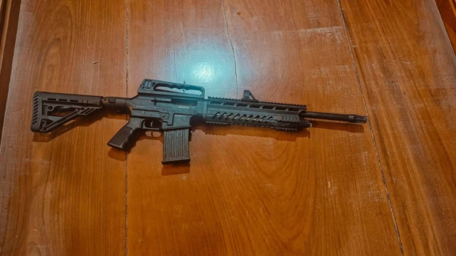 ขณะที่ภายในบ้านตรวจสอบพบปืน 2 กระบอก คืออาวุธปืนยาวสงคราม และ อาวุธปืนสั้นขนาด 9 มม.