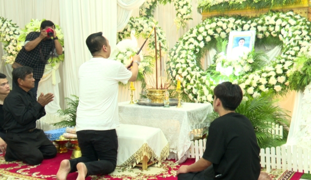 โดยการสวดพระอภิธรรมศพได้เริ่มต้นขึ้นในเวลา 20.00 น. มีพระภิกษุสงฆ์จำนวน 9 รูป ของวัดมะกอกสีมารามร่วมสวดฯ เพื่ออุทิศส่วนบุญส่วนกุศลให้กับ สจ.โต้ง มี พ.ต.อ.พรรณศักดิ์ วรวิบูลย์สวัสดิ์ รอง ผบก.สศป. เป็นประธานพิธี และญาติจุดธูปเทียนก่อนสวด