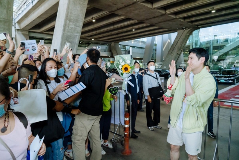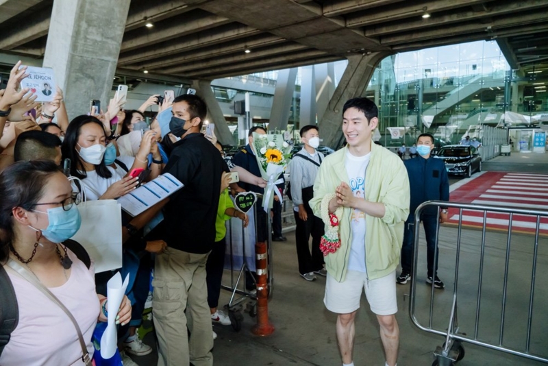 เสียงกรี๊ดต้อนรับดังสนั่น หลังพระเอกหนุ่มสุดหล่อ “อีเจฮุน” ปรากฎตัวหน้าประตูทางออกสนามบินสุวรรณภูมิ พร้อมส่งยิ้มหวานละลายใจ และเดินเข้ามาทักทายแฟนๆ อย่างใกล้ชิด ก่อนจะโบกไม้โบกมือลาขึ้นรถ เพื่อเดินทางไปยังที่พัก และเตรียมตัวสำหรับงานแถลงข่าวในเย็นวันนี้ ที่เซ็นทรัลเวิลด์