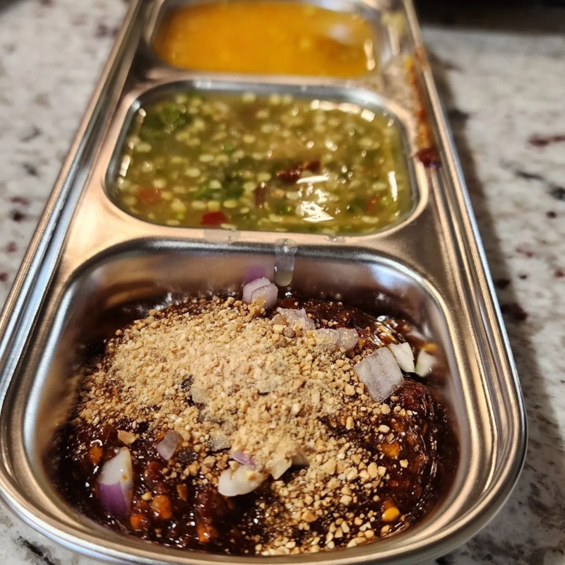 “ป๋าเต็ด” บอกว่า ผมไม่มีปัญหากับการเจอคน เพราะทำงานเจอคนเยอะอยู่แล้ว (หัวเราะ) ร้าน “ไปเต๊อะไปแจ่ว” เกิดการน้องสาวคนหนึ่งที่รู้จัก ได้นำสูตรแจ่วมาให้ชิม ซึ่งเมื่อชิมแล้วรสชาติเข้มข้น จะจิ้มหรือนำไปใส่ซุปก็กลายเป็นแจ่วฮ้อนรสเด็ด ถ้าใครเหงาแล้วอยากมากินของอร่อยก็มาได้ที่ “ไปเต๊อะไปแจ่ว”