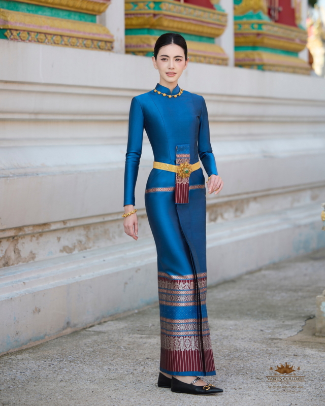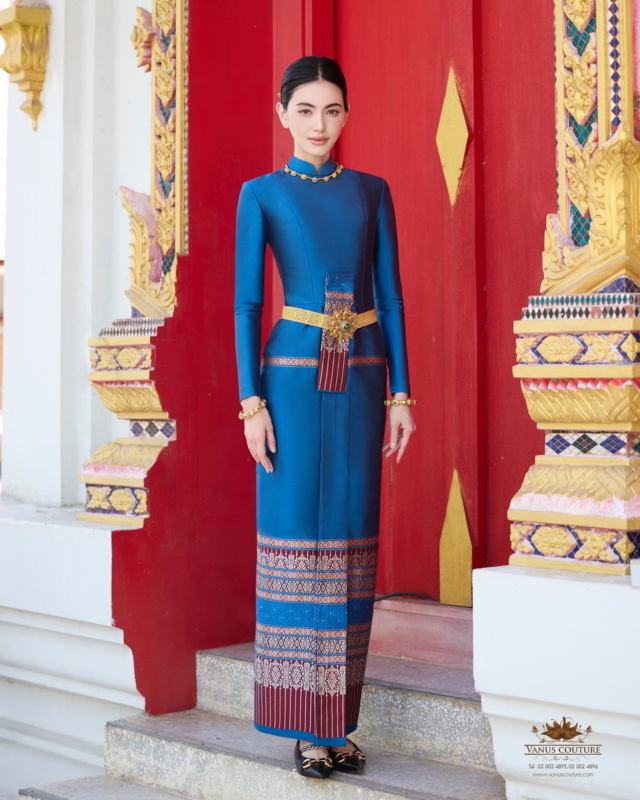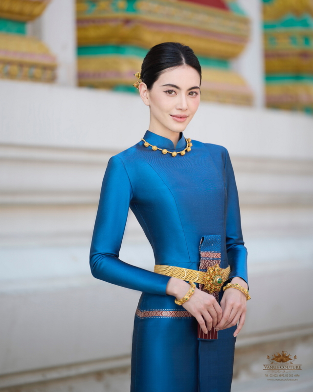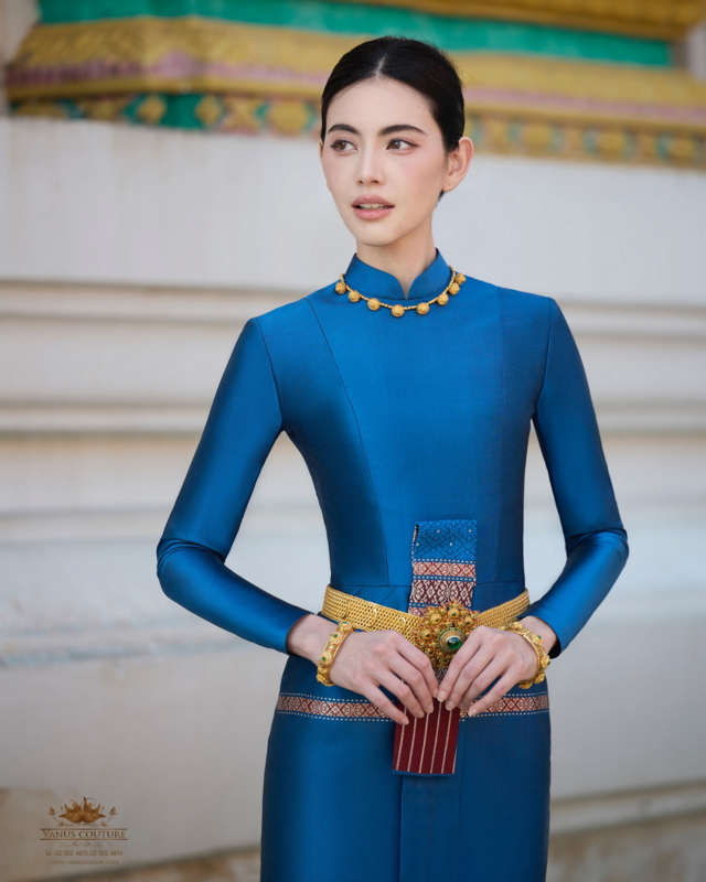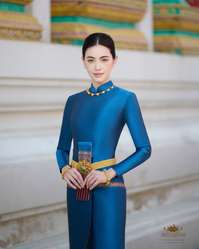 “ผมกับคุณใหม่เห็นพ้องต้องกันว่าควรเลือกใช้ ชุดไทยบรมพิมาน หนึ่งในชุดไทยพระราชนิยม ที่มีความประณีตและงดงามสะกดทุกสายตา ที่ตัดเย็บจาก ผ้าไหมทอมือยกลำพูนสีน้ำเงินคราม ที่สั่งทอขึ้นเป็นพิเศษจากช่างฝีมือชาวไทยเพื่อคุณใหม่โดยเฉพาะ พร้อมประดับด้วย เครื่องทองที่สั่งทำขึ้นเป็นพิเศษจากช่างทองโบราณ เพื่อเสริมเสน่ห์และความอ่อนช้อยในทุกมิติ ชุดไทยบรมพิมานนี้ไม่เพียงแต่แสดงถึงความงามของวัฒนธรรมไทย แต่ยังสะท้อนถึงจิตใจที่งดงามของผู้สวมใส่ในโอกาสพิเศษแห่งการทำบุญอีกด้วยครับ”