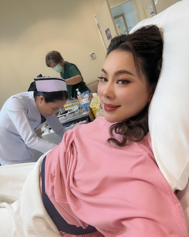นอกจากนี้ยังโพสต์อีกว่า "มดลูกบีบตัวสนุกสนาน แต่ไม่รู้สึกอะไรเลยค่ะ แม่อย่างชิล" งานนี้แฟนคลับแห่คอมเมนต์ขอให้คลอดง่ายทุกอย่างราบรื่น