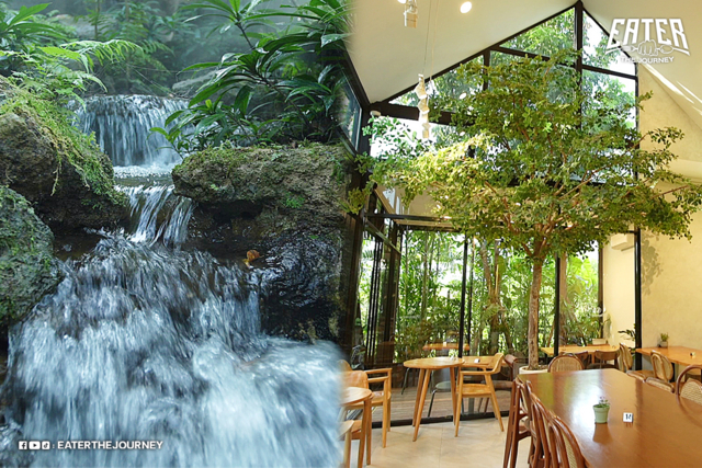 อิ่มท้องแล้วแวะคาเฟ่ธรรมชาติเติมพลังกันที่ “Plantnery Green Cafe” สดชื่น ร่มรื่น เขียวขจี ด้วยธีมสวนป่าในเมือง เค้ามีพรรณไม้มากกว่า 80 ชนิด ใช้ QR Code สแกนดูข้อมูลพรรณไม้ได้ด้วย พร้อมน้ำตกจำลองและบ่อปลาคาร์ปสีสันสดใส เมนูของร้านมีทั้งอาหารคาว-หวานและเครื่องดื่ม อาทิ สปาเกตตี้กุ้งครีมไข่กุ้ง, ข้าวผัดเนื้อสตริปลอยน์ออสเตรเลีย, เค้กมะพร้าว, ครอฟเฟิลสตอว์เบอร์รี่, อเมริกาโน่เย็นน้ำช่อดอกมะพร้าวเป็นต้น