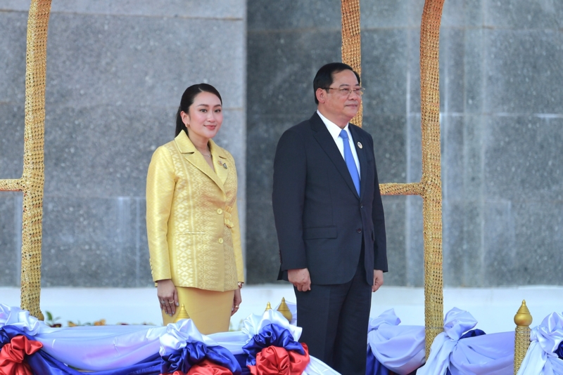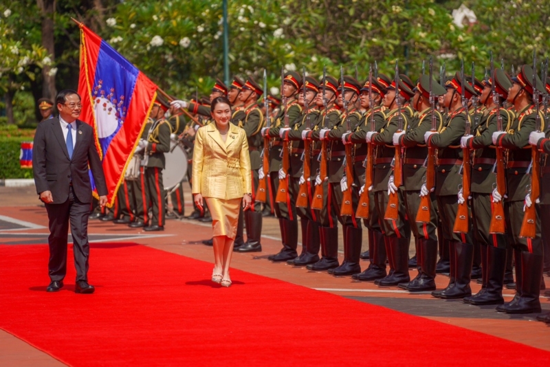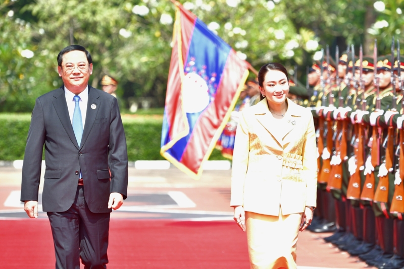 หลังจากนั้นได้มีพิธีต้อนรับ น.ส.แพทองธาร อย่างเป็นทางการ ณ สำนักงานนายกรัฐมนตรี สาธารณรัฐประชาธิปไตยประชาชนลาว โดยนาย สอนไซ สีพันดอน นายกรัฐมนตรี สาธารณรัฐประชาธิปไตยประชาชนลาว นำ น.ส.แพทองธาร เดินตรวจแถวทหารกองเกียรติยศ
