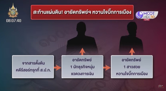 วันที่ 20 พ.ย. 67 ผู้สื่อข่าวรายงานว่า “รายการเจาะลึกทั่วไทย Inside Thailand” ที่มี นายดนัย เอกมหาสวัสดิ์ และ น.ส.อมรรัตน์ มหิทธิรุกข์ เป็นพิธีกรดำเนินการรายการ ซึ่งช่วงหนึ่ง นาย ดนัย ได้กล่าวว่า เปิดด้วยข่าวสะท้านแผ่นดิน กำลังจะมีการอายัดทรัพย์สาวสวยหวานใจระดับบิ๊กการเมือง ยืนยันสะท้านแผ่นดินแน่ๆ ถ้าตนเปิดชื่อสาวสวย และบิ๊กการเมือง