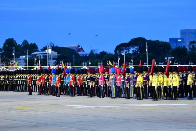 ทั้งนี้ กำลังพลสวนสนามและถวายสัตย์ปฏิญาณตนของทหารรักษาพระองค์ครั้งนี้ จำนวน 11 กองพัน ประกอบด้วย พลสวนสนามจากกรมทหารรักษาวังมหาดเล็กราชวัลลภรักษาพระองค์ กองบัญชาการทหารมหาดเล็กราชวัลลภรักษาพระองค์ หน่วยบัญชาการถวายความปลอดภัยรักษาพระองค์ กรมนักเรียนนายร้อยรักษาพระองค์ โรงเรียนนายร้อยพระจุลจอมเกล้า กรมนักเรียนนายเรือรักษาพระองค์ โรงเรียนนายเรือ กรมนักเรียนนายเรืออากาศรักษาพระองค์ โรงเรียนนายเรืออากาศนวมินทกษัตริยาธิราช กองพันทหารราบที่ 1 กรมทหารราบที่ 31 รักษาพระองค์ กองพันทหารอากาศโยธิน 3 กรมทหารอากาศโยธิน รักษาพระองค์ หน่วยบัญชาการนาวิกโยธิน กองพันทหารม้าที่ 25 กรมทหารม้าที่ 4 รักษาพระองค์ กองพันทหารราบที่ 2 กรมทหารราบที่ 21 รักษาพระองค์ กองพันทหารปืนใหญ่ที่ 102 กรมทหารปืนใหญ่ที่ 2 รักษาพระองค์ กองพันทหารราบที่ 1 รักษาพระองค์ กรมทหารราบที่ 1 กองพลนาวิกโยธิน หน่วยบัญชาการนาวิกโยธิน และกองพันทหารม้ารักษาพระองค์
