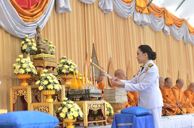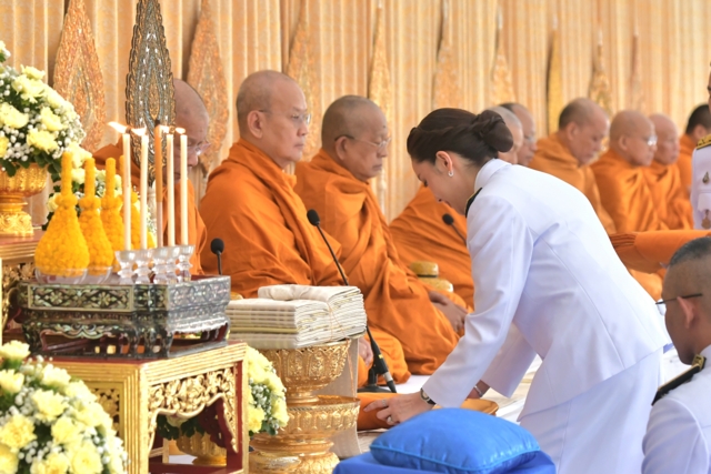 ทั้งนี้ เมื่อนายกรัฐมนตรีและคู่สมรส เดินทางมาถึงยังปะรำพิธี พระสงฆ์ จำนวน 10 รูป ขึ้นนั่งอาสน์สงฆ์ จากนั้น นายกรัฐมนตรี ได้จุดธูปเทียนบูชาพระรัตนตรัย และจุดธูปเทียนเครื่องทองน้อยหน้าพระบรมฉายาลักษณ์ พระบาทสมเด็จพระบรมชนกาธิเบศร มหาภูมิพลอดุลยเดชมหาราช บรมนาถบพิตร เจ้าหน้าที่อาราธนาศีล ประธานสงฆ์ให้ศีล เจ้าหน้าที่ปฏิบัติพิธีสงฆ์อาราธนาพระปริตร และพระสงฆ์เจริญพระพุทธมนต์