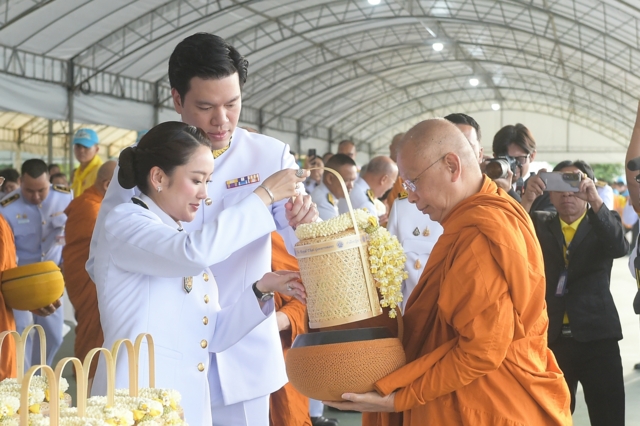 จากนั้น นายกรัฐมนตรีและคู่สมรส ได้นำผู้เข้าร่วมในพิธีฯ ตักบาตรสมเด็จพระราชาคณะ พระราชาคณะ และพระสงฆ์ จำนวน 189 รูป และเมื่อเสร็จพิธี นายกรัฐมนตรีและคู่สมรส ได้เดินทางต่อไปยัง อุทยานเฉลิมพระเกียรติพระบาทสมเด็จพระบรมชนกาธิเบศร มหาภูมิพลอดุลยเดชมหาราช บรมนาถบพิตร เขตดุสิต กรุงเทพฯ เพื่อเป็นประธานในพิธีวางพานพุ่มดอกไม้ถวายราชสักการะ