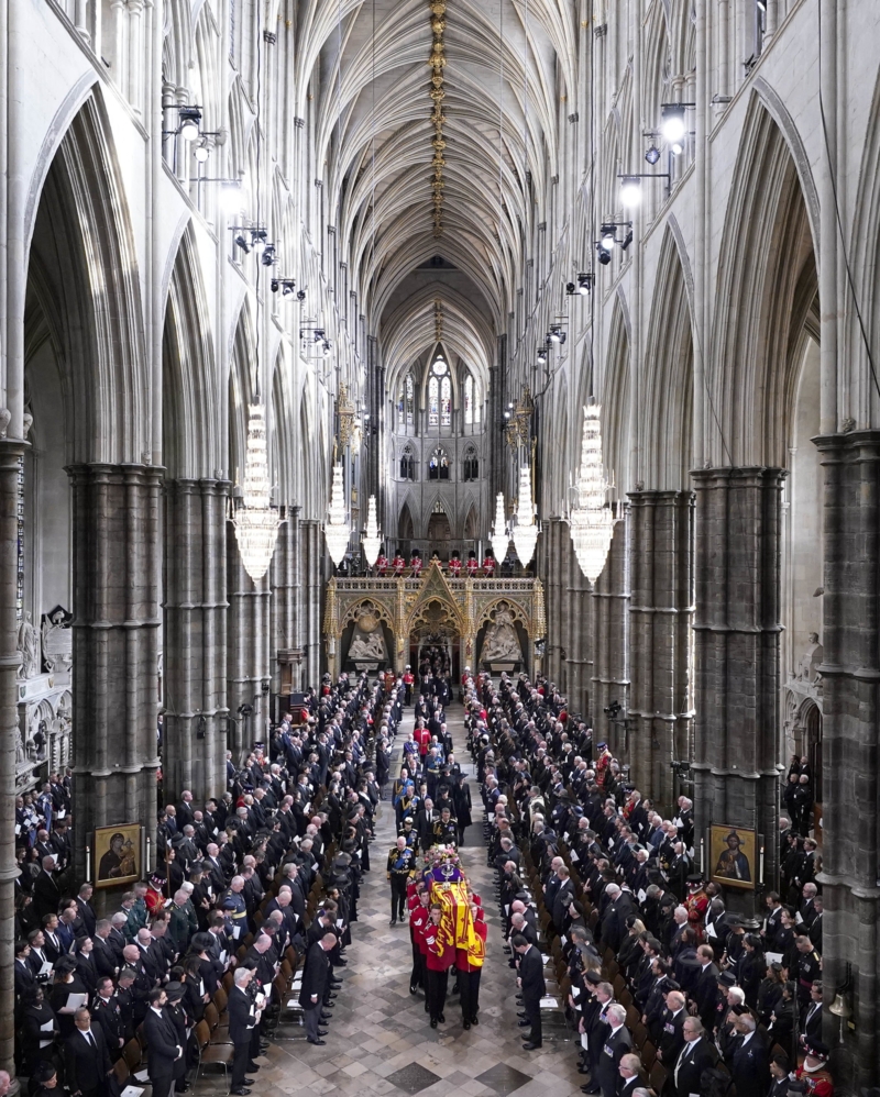 พระราชพิธีพระบรมศพ ควีนเอลิซาเบธที่ 2 ณ มหาวิหารเวสต์มินสเตอร์ ท่ามกลาง บรรดาพระบรมวงศานุวงศ์อังกฤษ และแขกที่ได้รับเชิญกว่า 2,000 คน