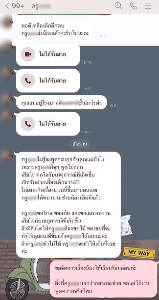 ตอนเกิดเหตุส่งแช็ตมาบอกว่าเป็นคราวซวยของครูได้เงินไม่กี่พัน ส่วนตัวแม่เองที่สูญเสีย ยังไม่ได้รับความเป็นธรรม ทางครูก็ยังไม่ได้ออกมาชี้แจงว่าจะรับผิดชอบยังไงที่ทำให้ลูกเสียชีวิต ซึ่งตอนนี้เนอสเซอรี่ก็ปิดทำการอยู่