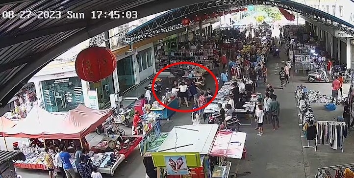 ซึ่งผ่านไปสักพักคนในตลาดจึงเข้าไปแยก ทั้งสองฝ่ายออกจากกัน.