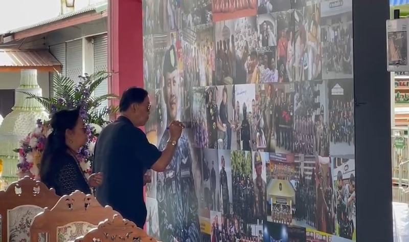 ส่วนบริเวณโดมใหญ่หน้าเมรุ วันนี้ทางเพื่อนตำรวจก็ได้รวบรวมรูปของ “ผู้กำกับเบิ้ม” ในบทบาทต่างๆ ทั้งการทำหน้าที่ทางราชการ ช่วงเวลาฝึกฝน ช่วงที่อยู่กับครอบครัว ช่วงบวชเป็นพระสงฆ์ และหลากหลายรูป มาทำเป็นบอร์ดขนาดใหญ่