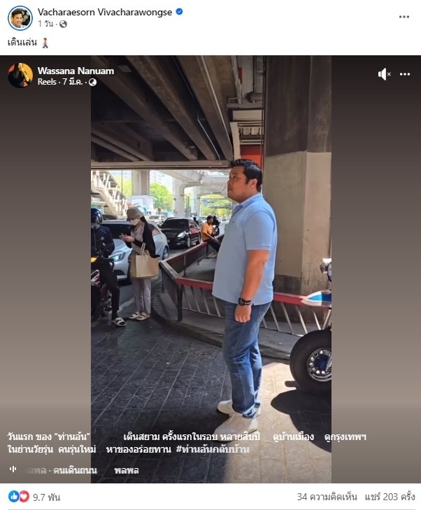 นอกจากนี้เมื่อวานที่ผ่านมา (8 มี.ค. 67) ท่านอ้นได้แชร์โพสต์ของ คุณเล็ก วาสนา นาน่วม ผู้สื่อข่าวชื่ดังสายทหาร โดยท่านอ้นระบุว่า เดินเล่น