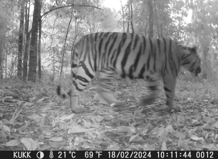 โดยสามารถถ่ายได้เมื่อวันที่ 18 กุมภาพันธ์ 2567 เป็นเสือโคร่งตัวเต็มวัยไม่ทราบเพศ ถ่ายได้ด้วยกล้อง camera trap ของ นสพ.ดร.ไชยยันต์ เกษรดอกบัว นักวิจัยของคณะสัตวแพทยศาสตร์ มหาวิทยาลัยเกษตรศาสตร์