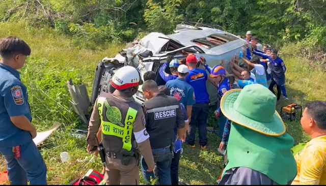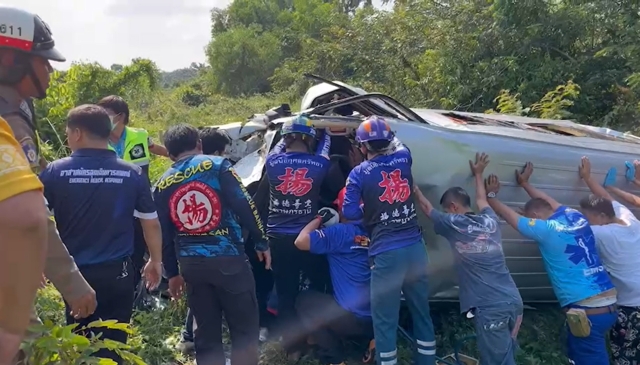 ระทึก! รถตู้นักเรียน ม.1 คว่ำเจ็บระนาว หลังกลับจากเข้าค่ายนครศรีธรรมราช ใช้เวลาครึ่งชม. งัดรถเอาคนขับ-ครูนั่งข้างออกมาส่งรพ.