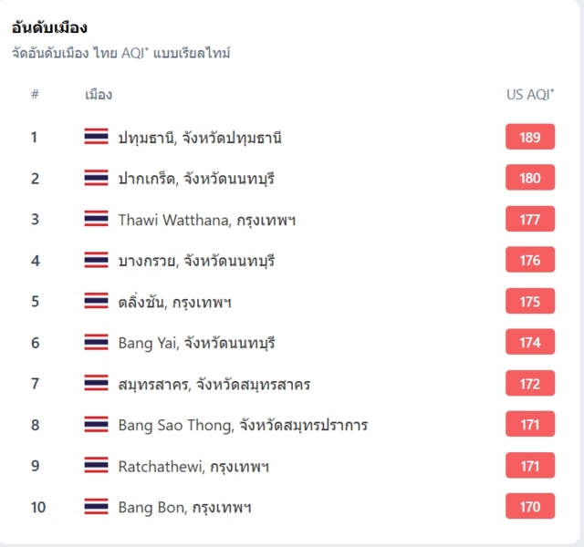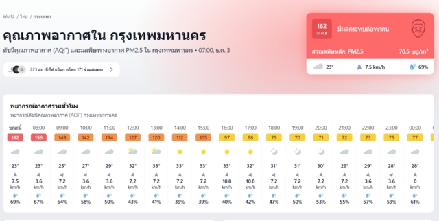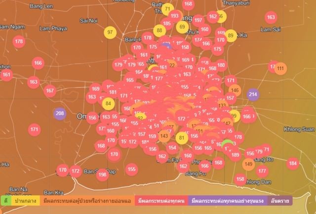 ขณะเดียวกันแอป IQ Air ซึ่งเป็นแอปพลิเคชั่นที่รายงานสภาพอากาศแบบเรียลไทม์ ระบุว่า ระดับค่ามลภาวะทางอากาศของกรุงเทพมหานครพุ่งขึ้นเป็นอันดับ 12 ของโลกในวันนี้