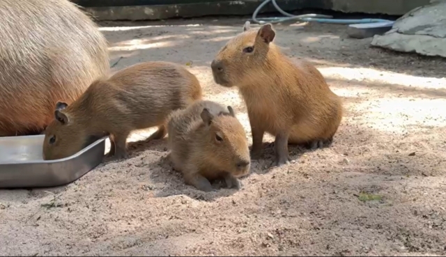วันที่ 3 ธ.ค. 67 นายณรงวิทย์ ชดช้อย ผอ.สวนสัตว์เปิดเขาเขียว เปิดเผยว่า สวนสัตว์เปิดเขาเขียวได้ข่าวดี เมื่อ คาปิบารา ซึ่งเป็นหนูและสัตว์ฟันแทะขนาดใหญ่ที่สุดในโลก มีลักษณะคล้ายหนูตะเภา มีถิ่นกำเนิดในทวีปอเมริกาใต้ ออกลูกให้สมาชิกใหม่ เมื่อวันที่ 29 ต.ค. 67 เป็น ลูกหนูยักษ์คาปิบารา จำนวน 3 ตัว จากพ่อชื่อจิ๋ว อายุ 6 ปี แม่ชื่อส้มเช้ง อายุ 8 ปี แต่ยังไม่สามารถระบุเพศได้ เนื่องจากยังคงปล่อยให้แม่เลี้ยงแบบธรรมชาติ มีรูปร่างหน้าตาน่ารัก น่าเอ็นดู สุขภาพแข็งแรง