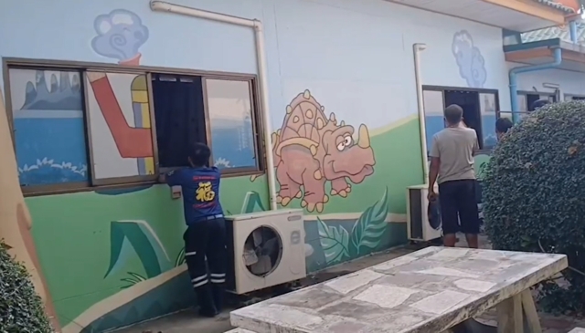 เมื่อไปถึงที่เกิดเหตุ ซึ่งเป็นศูนย์เด็กเล็ก ภายในห้องเรียน พบมีควันไฟและเปลวไฟกำลังพวยพุ่งออกมา เจ้าหน้าที่ดับเพลิงจึงรีบฉีดน้ำสกัดเพลิงทันที โดยใช้เวลาประมาณ 30 นาที เพลิงจึงสงบลง โดยไม่พบผู้เสียชีวิตและบาดเจ็บ ตรวจสอบความเสียหายพบว่าภายในห้องถูกไฟไหม้เสียหาย รวมทั้งอุปกรณ์การเรียน และ หนังสือเรียน