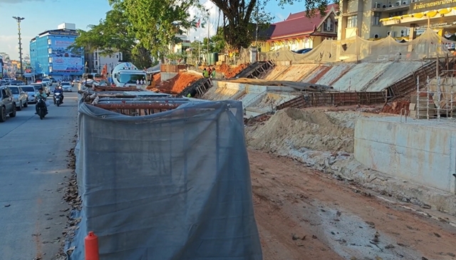 โดยกรมโยธาธิการให้ข้อมูลว่า ฝ่ายผู้รับจ้างรายงานว่าขณะนี้ความคืบหน้าการก่อสร้างอยู่ที่ 80% ซึ่งค้านสายตาชาวบ้านผู้พบเห็น เนื่องจากยังเหลือเนื้องานตามแบบก่อสร้างอีกมาก