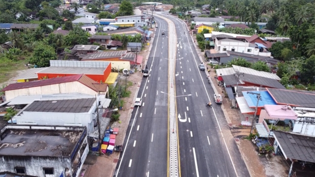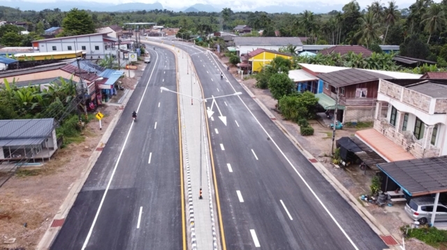 โดยผ่านชุมชน และสถานที่ราชการในพื้นที่ อ.ตะโหมด แต่เมื่อก่อสร้างเสร็จ ถนนที่สร้างนั้นเป็นหลุมเป็นบ่อ ไม่เรียบ และมีรอยปะถนนตลอดสาย ทำให้ชาวบ้านที่ใช้เส้นทางต้องขับรถกันอย่างระมัดระวัง เนื่องจากถนนเป็นเหมือนลูกระนาด พร้อมกันนั้นในการสร้างเกาะกลางถนน ไม่ได้ก่อสร้างช่องทางจุดกลับรถในจุดที่ชาวบ้านใช้ประโยชน์ แต่ไปสร้างจุดกลับรถเอื้อประโยชน์ให้กับปั๊มน้ำมันเอกชนมากกว่า