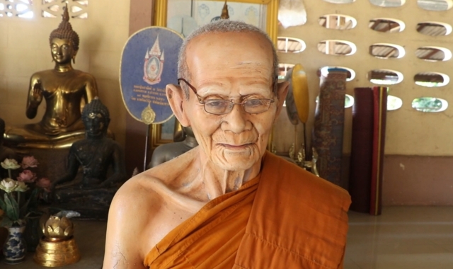 วันนี้ ( 10 ธ.ค.67 ) ที่วัดรางโบสถ์ ต.ดอนทราย อ.ปากท่อ จ.ราชบุรี ได้มีเรื่องราวแปลกๆ เกิดขึ้น เนื่องจากเป็นคำบอกเล่าของพระลูกวัดรางโบสถ์ ได้ออกบิณฑบาตช่วงเช้า ช่วงขณะเดินทางผ่านต้นตะเคียนใกล้ประตูทางออก บังเอิญสายตาเหลือบไปเห็นรูปปั้นพระ ลักษณะเป็นพระเกจิรูปหนึ่ง นั่งประดิษฐานอยู่บนฐานไม้ในศาลาเล็กๆ 4 เสา ใต้โคนต้นตะเคียน ลักษณะเป็นพระหล่อรูปเหมือน สร้างด้วยเรซิ่นขนาดเท่าองค์จริง ห่มจีวร สวมแว่นตา รูปลักษณ์ดูเป็นสง่า มีอายุเก่าแก่มากแล้ว คล้ายพระเกจิที่มีบารมีสูง จากการดูลักษณะการปั้น รูปองค์การนั่งห่มจีวร มือสองข้างจับหัวเข่า มีเส้นผมเสมือนจริง สอบถามพระทั้งวัดไม่รู้ว่าใครเป็นผู้นำมาทิ้งไว้นานแล้ว