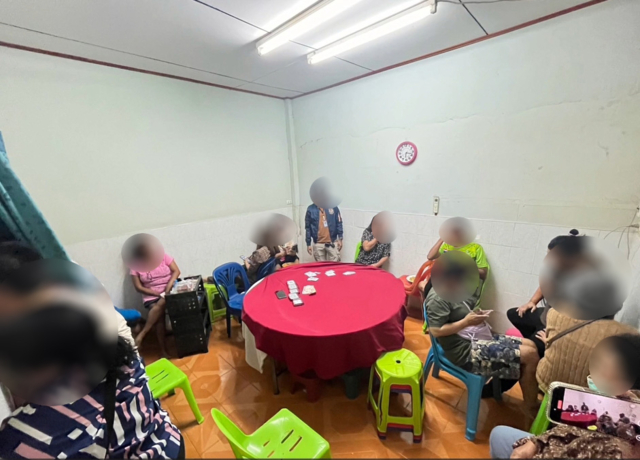 หลังสืบทราบว่า มีการเปิดลักลอบเล่นการพนัน โดยไม่ได้รับอนุญาต สามารถจับกุมนักพนัน ทั้งชายและหญิงคนไทย 13 และหญิงชาวเมียนมา 1 ราย รวม 14 คน พร้อมด้วยของกลางหลายรายการ อาทิ โต๊ะกลมที่ใช้ในการเล่นการพนัน 1 ตัว เก้าอี้ประมาณ 15 ตัว ไพ่เปิดกล่องเล่นแล้ว 5 สำรับ เงินสดซึ่งเป็นธนบัตรไทย จำนวน 3,000 บาท เป็นต้น โดยแจ้งข้อกล่าวหาร่วมกันลักลอบเล่นการพนัน (เก้าเก) พนันเอาทรัพย์สินกันโดยไม่ได้รับอนุญาต