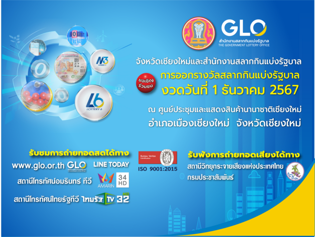 สำนักงานสลากกินแบ่งรัฐบาล พร้อมทำการออกรางวัลสัญจร จ.เชียงใหม่ งวด 1 ธันวาคม 2567 นี้