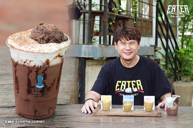 วันเสาร์ปลายเดือนแบบนี้ต้องหาร้านอาหารอร่อยๆ ไปกับรายการ “EATER THE JOURNEY” โดยพิธีกรหนุ่มตาตี๋ สอง-นพเก้า โกเจริญกิจ พาคุณไปคาเฟ่สไตล์ Australia Cuisine กับร้าน “Bluetamp Cafe” เปิดมาแล้ว 8 ปี โดยคุณตูน-ฉัฏฐ์ ธนพลอยพงศ์ เจ้าของร้านหนุ่ม IT ที่หนีไปเรียนภาษาที่ซิดนีย์ ออสเตรเลีย ระหว่างเรียนก็ได้ทำงานในคาเฟ่รวมกว่า 8 ปี ตั้งแต่พนักงานบาริสต้าจนขึ้นมาเป็น Head Chef ของร้าน ต่อมากลับไทยมาเปิดร้านกาแฟเล็กๆ จนมีโอกาสมาเซ้งร้านนี้ในปัจจุบัน กาแฟที่ร้านเป็นกาแฟสไตล์ออสซี่ มีเบลนด์ซิกเนเจอร์ประจำร้าน “Balanced Blend” ใช้เมล็ดกาแฟบราซิล เอธิโอเปียและโคลอมเบีย