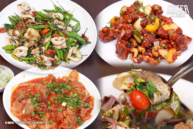 มาทานกันต่อที่ร้านที่สอง “ฉันท์ ลาดพร้าว 87” ร้านอาหารทะเลสดๆ จากเรือเล็กชาวประมงพื้นบ้านจังหวัดชลบุรี ด้วยคอนเซป “ไม่สด ไม่เสิร์ฟ” ทางร้านขับรถไป-กลับชลบุรี ขายกันวันต่อวัน บางเมนูไม่ได้มีทุกวัน เน้นว่าวันนั้นได้วัตถุดิบสดๆ อะไรมาบ้าง รวมๆ 200-300 เมนูให้เลือก เมนูแนะนำที่มีประจำ อาทิ “หมึกน้ำดำ” ปลาหมึกสดๆ เด้งๆ เนื้อหวาน, “แมงกระพรุนน้ำมันงา” เนื้อเด้ง-กรอบ หอมน้ำมันงา น้ำยำแซ่บ, ไก่ผัดเม็ดมะม่วง, ต้มโคล้ง, ผัดพริกขึ้หนูสวน อาหารทะเลราคาเริ่มต้น 100 บาท