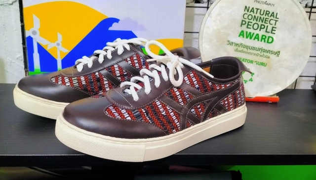 นายณัฐวุฒิ กล่าวเพิ่มเติมว่า นำขยะจากป้ายไวนิลมาเพิ่มมูลค่าผ่านกระบวนการออกแบบร่วมกับกลุ่มผู้สูงอายุในชุมชนที่มีความเชี่ยวชาญด้านการทอผ้า สร้างสรรค์เป็นผลิตภัณฑ์ใหม่ อาทิ กระเป๋า เสื้อผ้า รองเท้า และเฟอร์นิเจอร์ สร้างรายได้ในกับคนในชุมชน และนำเศษผ้าที่เหลือจากการบวนการผลิตในข้างต้น มาถักทอเป็น “ผ้าทอมือ BCG” พร้อมสอดแทรกวัฒนธรรมพื้นถิ่นผ่านภูมิปัญญาการทอผ้าแบบ “จก” ถ่ายทอดอัตลักษณ์ลงบนผืนผ้าเพื่อต่อยอดเป็นวัตถุดิบให้กับผู้ประกอบการอุตสาหกรรมสิ่งทอ และสินค้าแฟชั่นนำไปพัฒนาเป็นผลิตภัณฑ์ใหม่ สามารถสร้างรายได้เพิ่มขึ้นร้อยละ 15 หรือประมาณ 50,000 บาทต่อเดือน