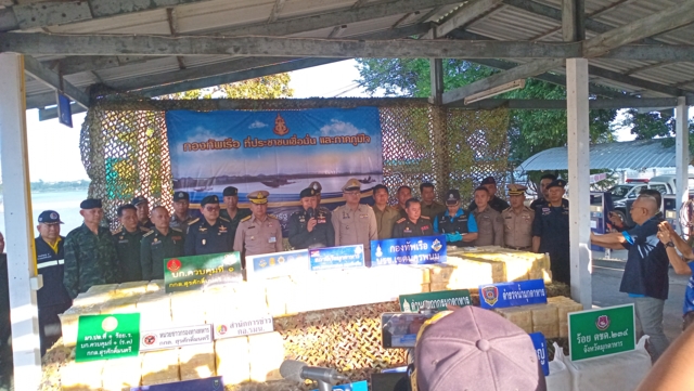 พลโท บุญสิน พาดกลาง แม่ทัพภาคที่ 2 แถลงข่าวการจับกุมยาบ้าลอตใหญ่จำนวน 20 กระสอบ ประมาณ 8 ล้านเม็ด ริมฝั่งแม่น้ำโขง บ้านหว้านใหญ่ อำเภอหว้านใหญ่ จังหวัดมุกดาหาร