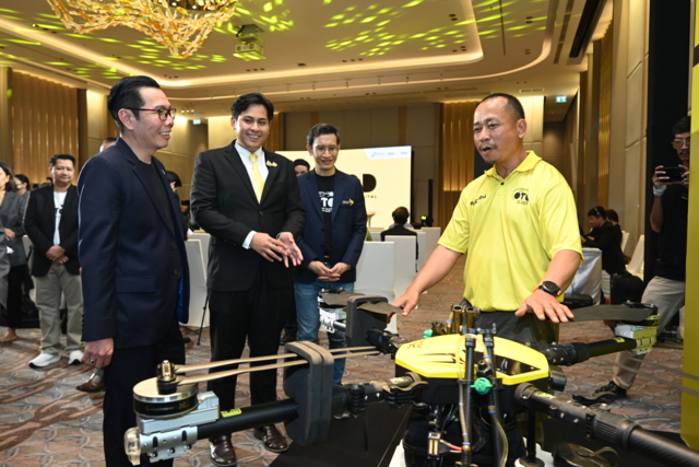 “การนำเทคโนโลยีดิจิทัลมาประยุกต์ใช้ในภาคการเกษตรจะช่วยเพิ่มประสิทธิภาพการผลิต ลดต้นทุนการเพาะปลูก นำไปสู่การเพิ่มรายได้ครัวเรือน ลดความเหลื่อมล้ำ ส่งผลให้เกษตรกรและชุมชนสามารถพึ่งพาตนเองได้ อีกทั้งเป็นการเพิ่มขีดความสามารถด้านดิจิทัลเพื่อสร้างข้อได้เปรียบด้านการแข่งขันของประเทศ ซึ่งโดรนเพื่อการเกษตรถือเป็นเครื่องมือสำคัญในการยกระดับการทำเกษตรแบบดั้งเดิมสู่เกษตรทันสมัย ภายใต้หลักการ ‘ตลาดนำ นวัตกรรมเสริม เพิ่มรายได้’ ด้วยการนำเทคโนโลยีเพื่อการเกษตร (Agri-Tech) มาใช้พัฒนาภาคเกษตรกรรม ช่วยให้เกษตรกรปรับตัวได้ทันกับการเปลี่ยนแปลงในโลกยุคดิจิทัล” ที่ปรึกษารัฐมนตรีว่าการกระทรวงดีอี กล่าว